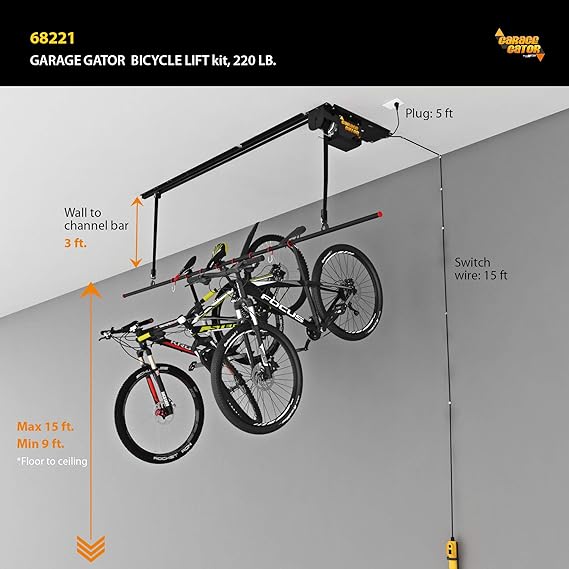 Bicycle Lifts For Garage : Garage Gator Motorized Bike Lift Gg8220 Overhead Storage 220lbs Garage Tools Storage / Bicycle hoisted and excess pulley rope attached to wall holder.. Uses have spoken of stripped or broken heads during installation. Smooth pulleys and latches make lifting even heavy bikes super easy. Bike bicycle garage storage lift bike rack hoist 40kg capacity heavy duty hanger, ceiling mount cycle bike holder accessories. Pulley system makes access quick and easy. Bicycle hoisted and excess pulley rope attached to wall holder.
