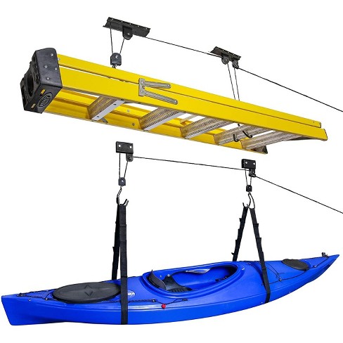 Bike bicycle garage storage lift bike rack hoist 40kg capacity heavy duty. Bicycle lift for use in basement and garage• 2. It should be spaced the distance from the end of back of seat rests on the bracket and the front bracket is under the handle bars. You simply lift your bike up and out of the way. If you have the room then get the full size lift with the 9ft lift bar capable of lifting any number storage lifts direct has the best selection of attic lifts, elevators, garage ceiling lifts and hoists, kayak, canoe and bicycle lifts.